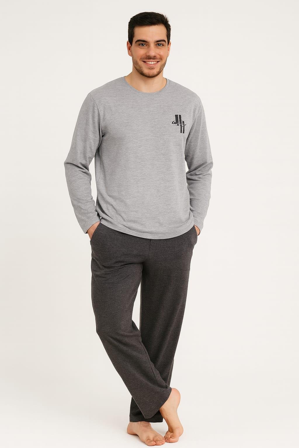 Erkek 6150 Uzun Kol % 100 Pamuk Pijama Takımı GRİ (6150-11)