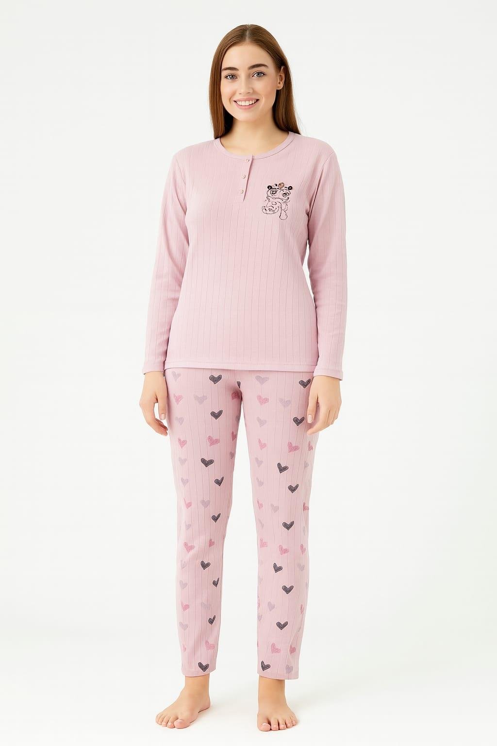 Kadın 05011 Uzun Kol % 100 Pamuk Raporlu İnterlok PUDRA