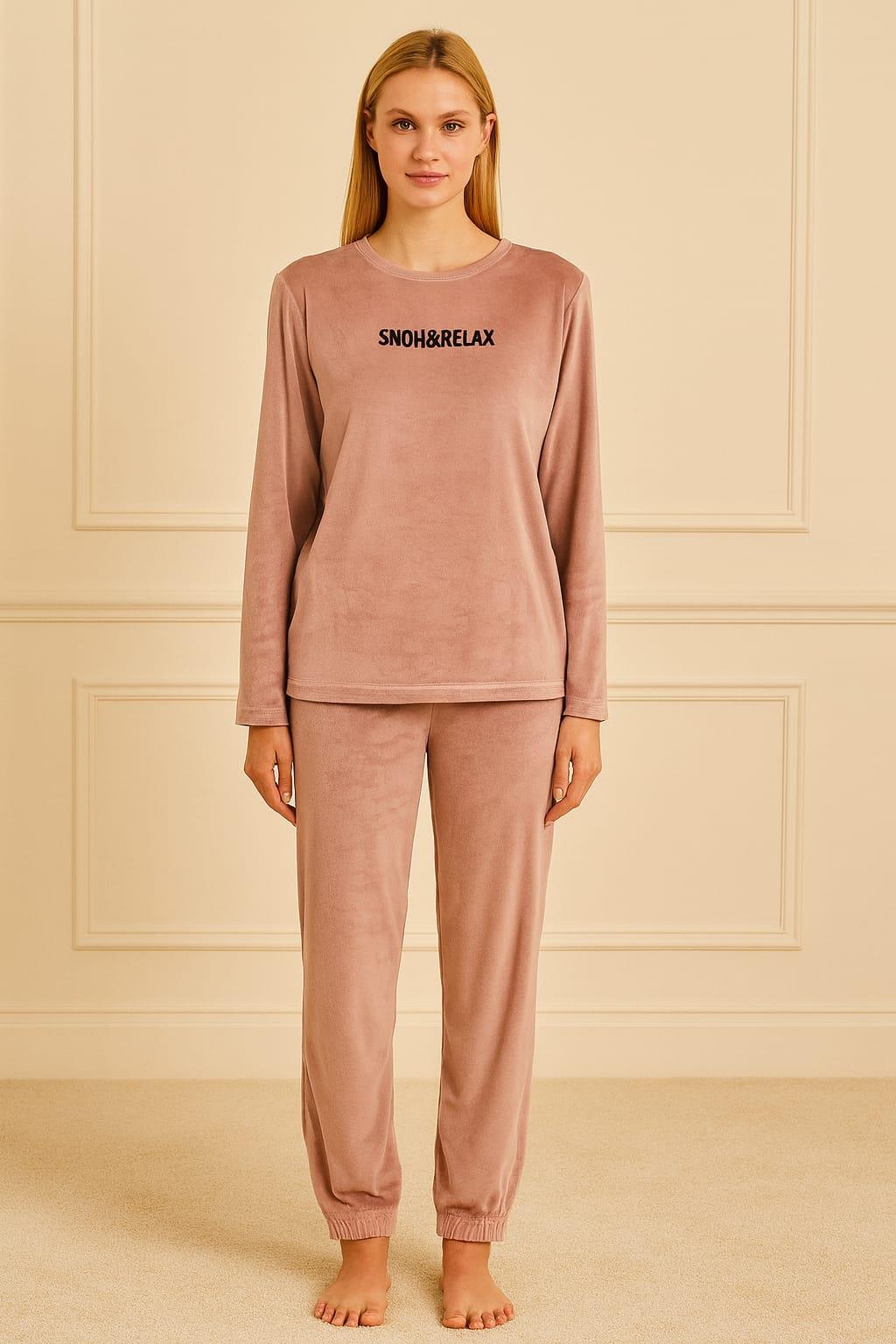 Kadın 13164-2650 Uzun Kol Kadife Pijama Takımı PUDRA (13164-2650)