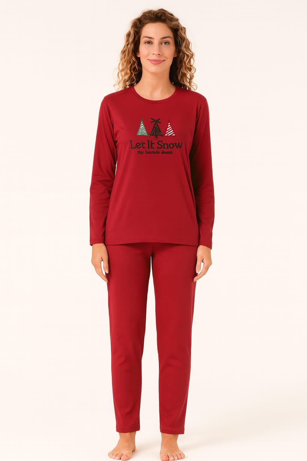 Kadın 1910-2619 Uzun Kol Likralı Sandy Pijama Takımı KIRMIZI (19104-2619)