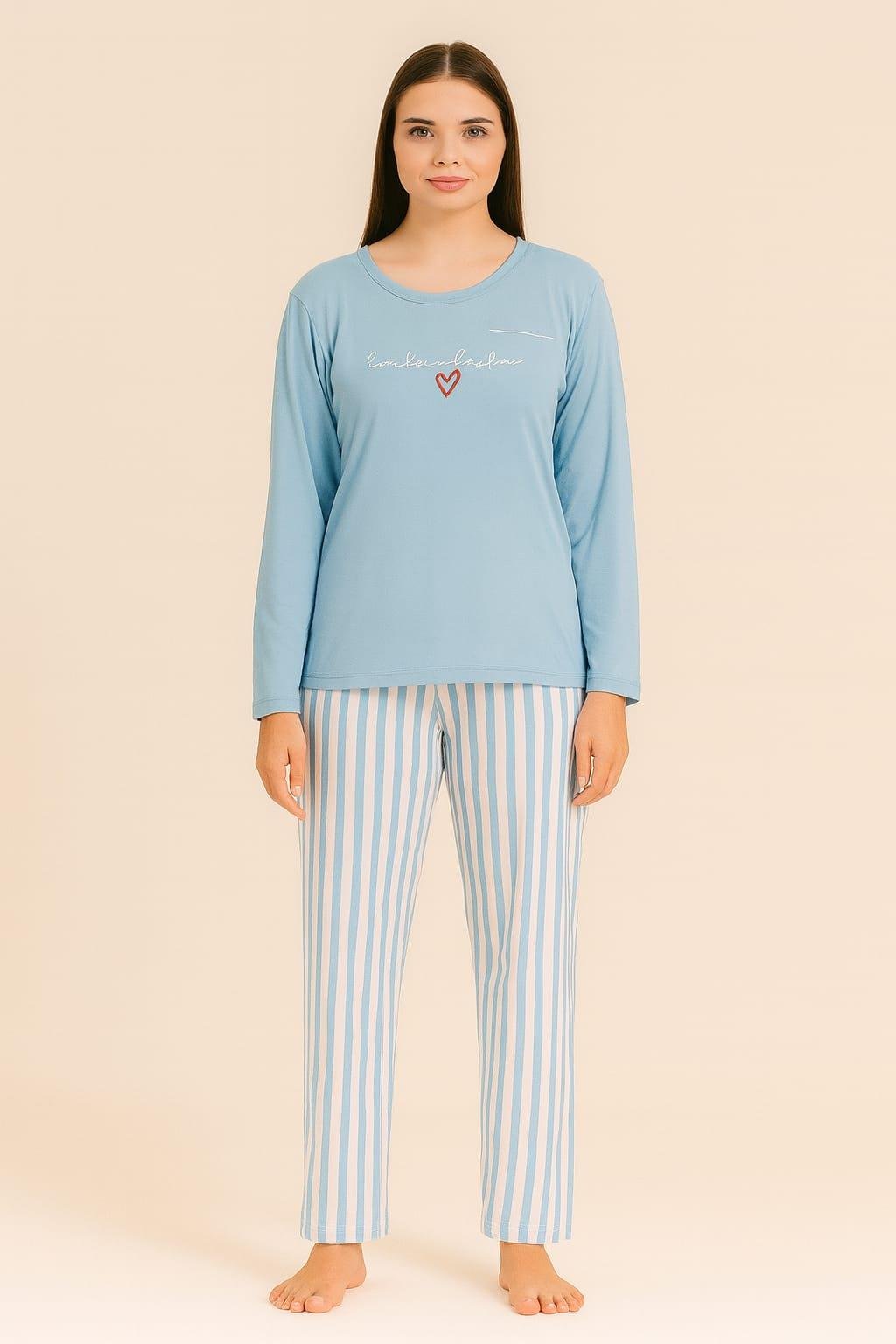 Kadın 20281 Uzun Kol Milan Pijama Takımı MAVİ