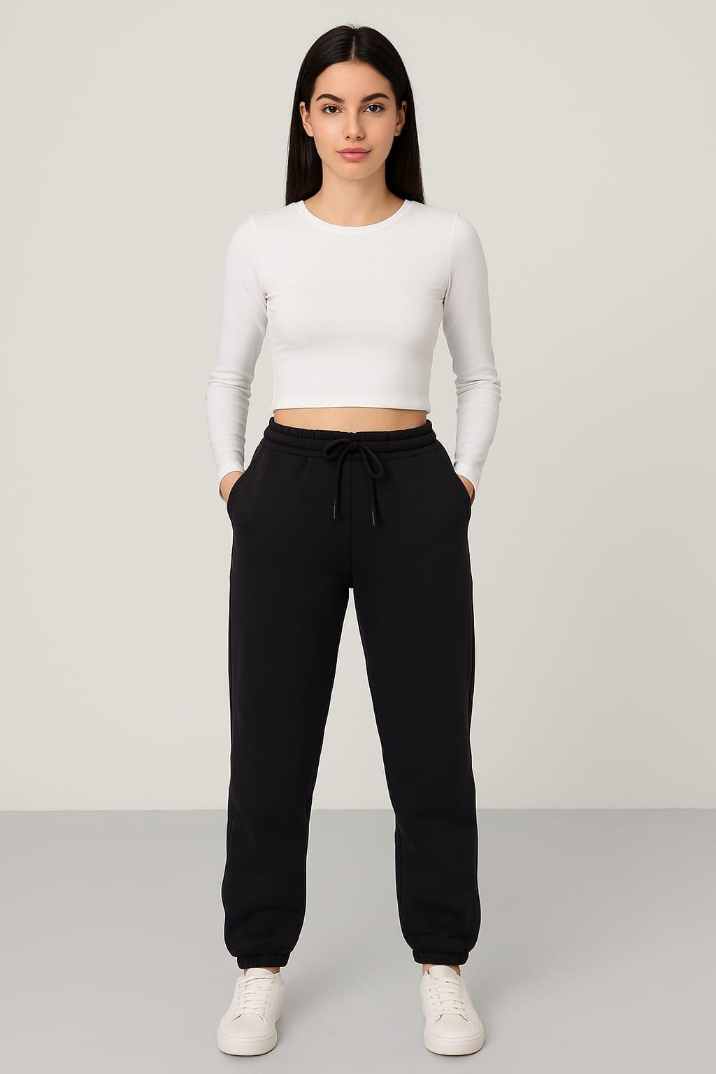 Kadın 3 İplik Cepli Alt Eşofman SİYAH (VOLA)