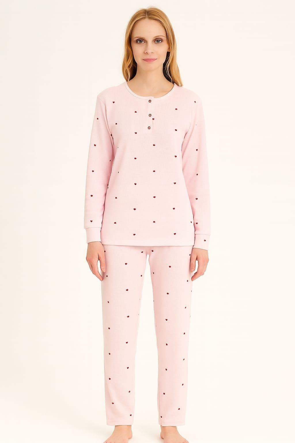 Kadın 70920 Uzun Kol Likralı Waffle Pijama Takımı PEMBE (70920-1857)