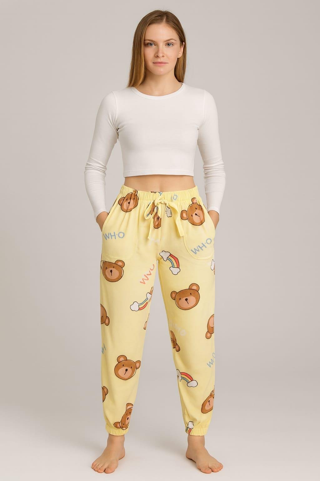Kadın Cepli Paça Lastikli Kadife Tek Alt SARI (SARIAYICIK)