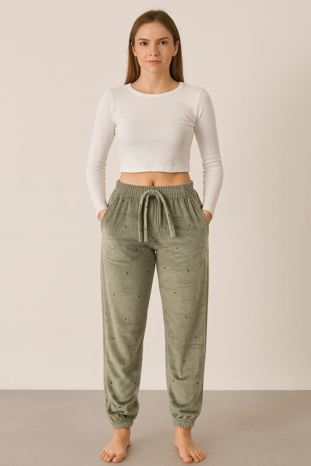 Kadın Cepli Paça Lastikli Kadife Tek Alt YEŞİL (KADİFEYILDIZ)