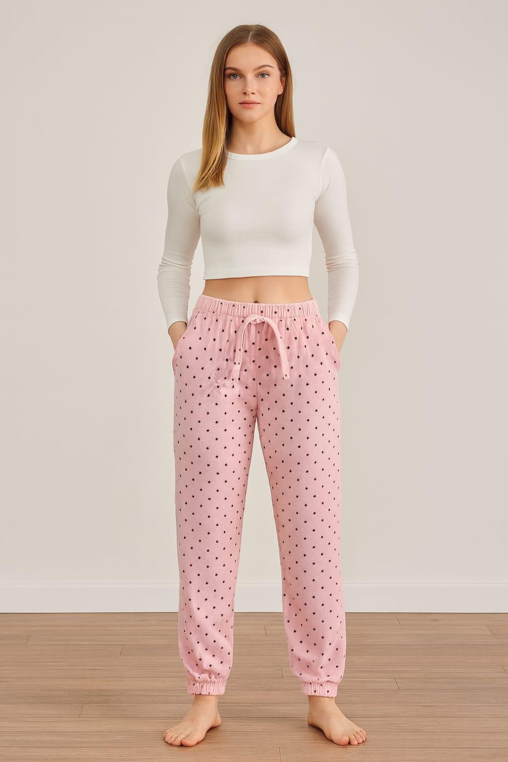 Kadın Cepli Puantiyeli Paça Lastlikli Kadife Tek Alt PEMBE (PUANTİYEKADİFE)