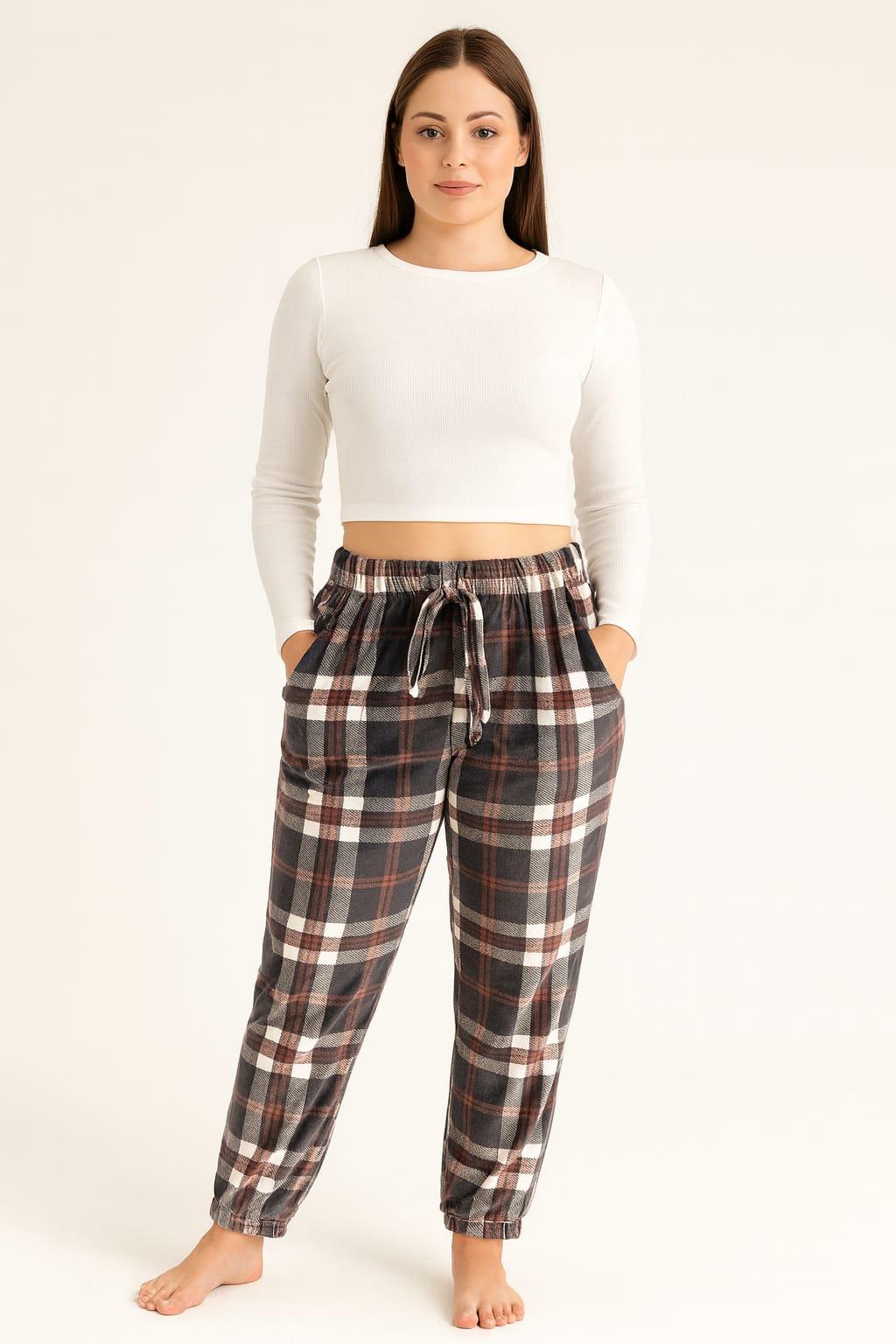 Kadın Ekose Desenli Cepli Paça Lastikli Kadife Tek Alt FÜME (EKOSEKADİFE)