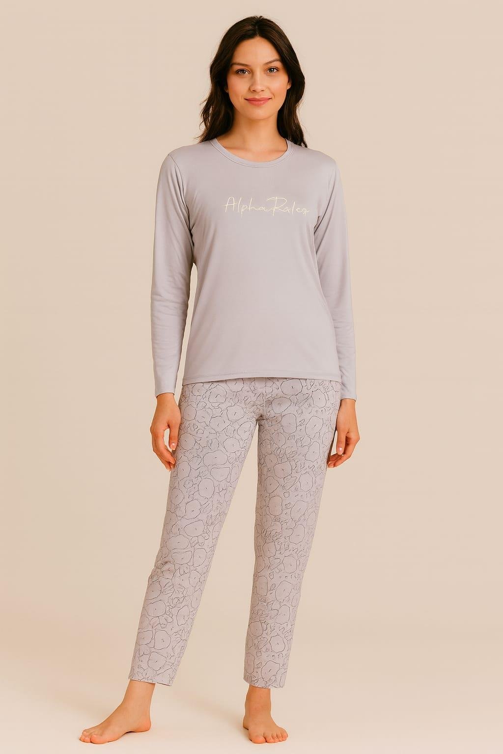 Kadın Uzun Kol 20360 Milan Pijama Takımı GRİ (20360)