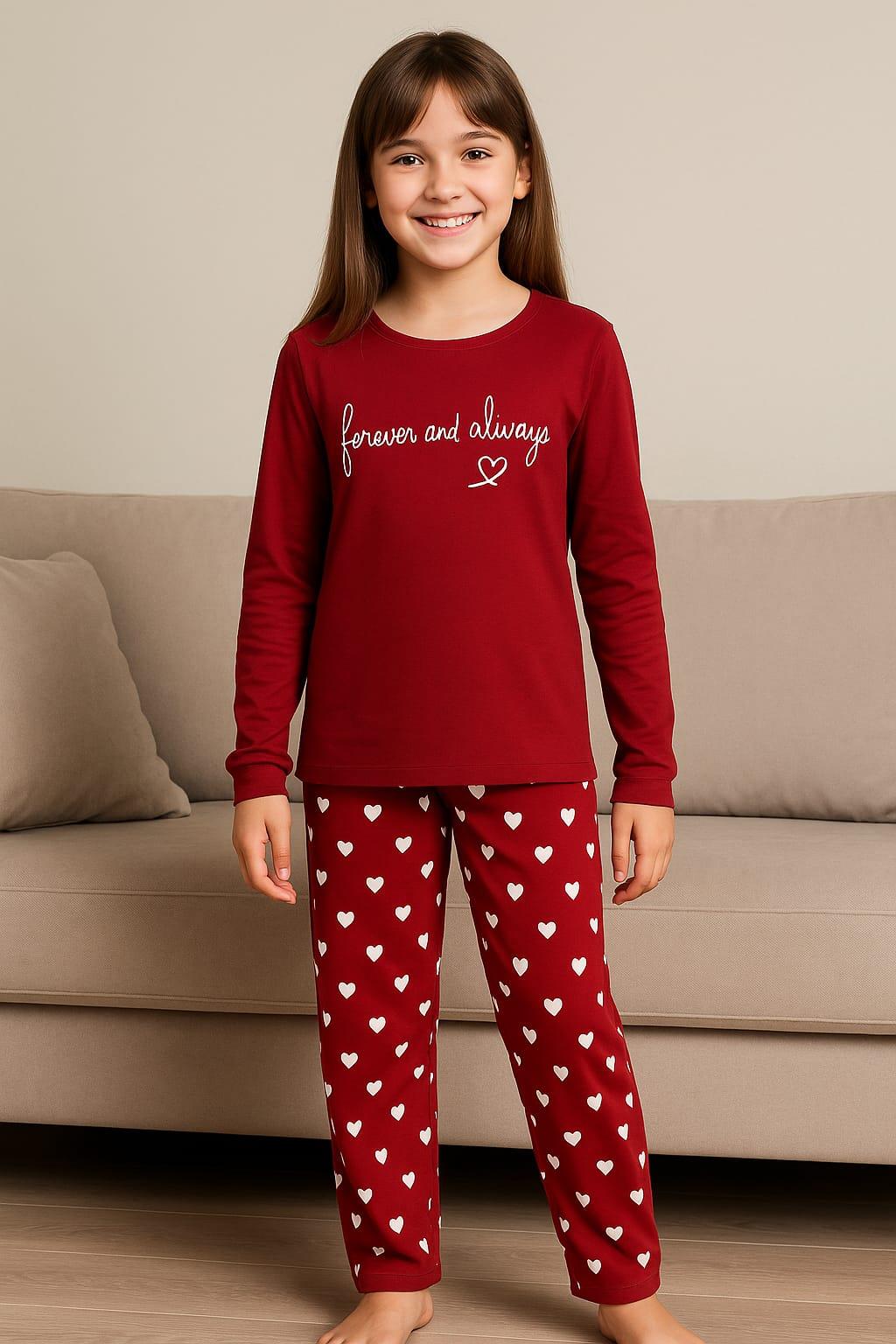 Kız Çocuk 15296 Milan Uzun Kol Pijama Takımı BORDO (15296)