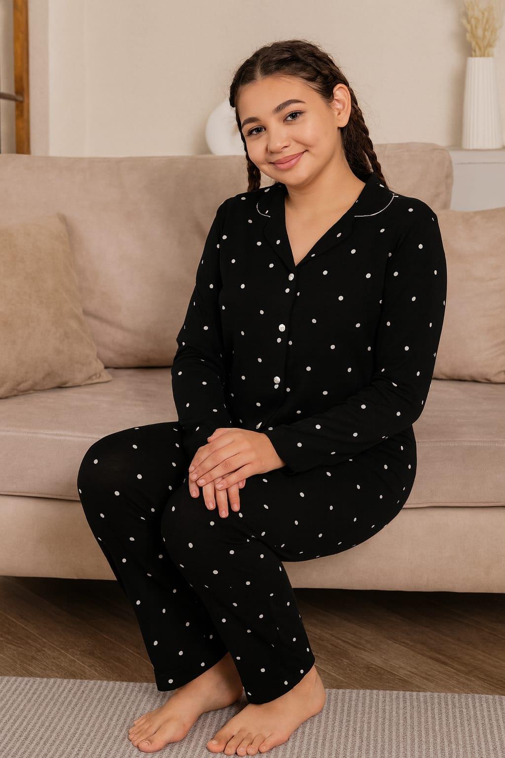 Kız Çocuk 15332 Önü Düğmeli Uzun Kol Pijama Takımı SİYAH